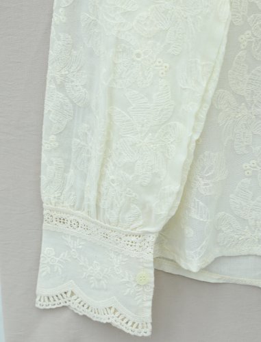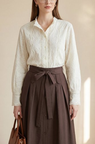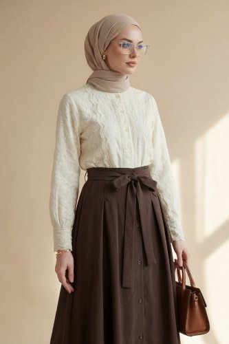 • Brode İşlemeli Vintage Gömlek Bluz Bej